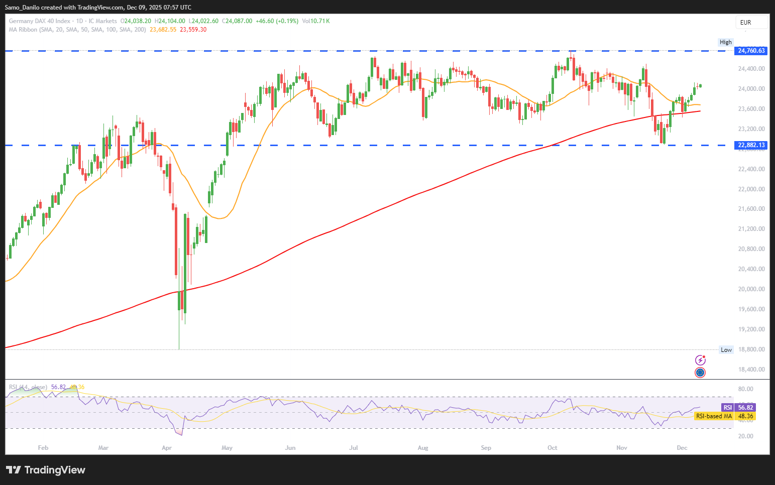 - DAX Price: The DAX 40 trades near 24,090, having broken key resistance and signaling continued upside potential toward the 24,200 area.