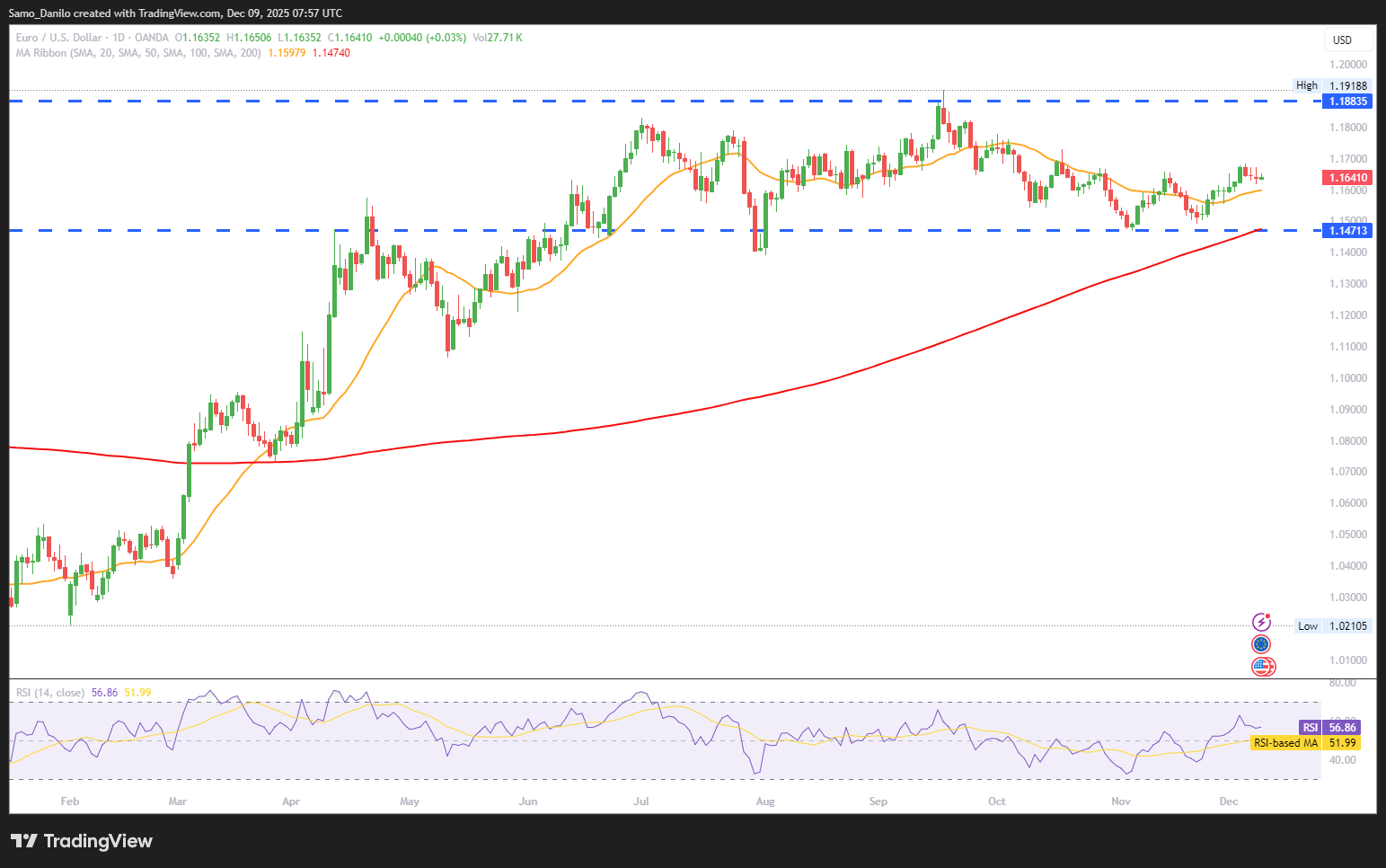 Closing statement: EUR/USD is benefiting from firmer Eurozone fundamentals and diminishing ECB rate-cut bets, though upcoming U.S. labor data may determine whether the pair can sustain momentum above the mid-1.16s.