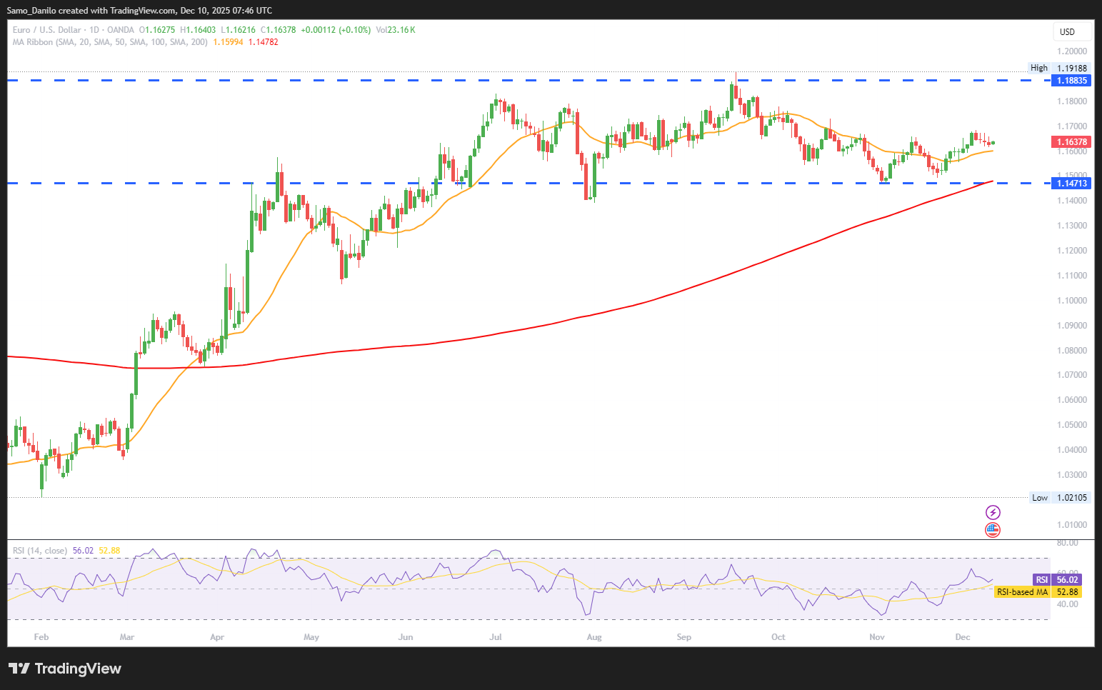 - EUR/USD Price: EUR/USD holds flat near 1.1635 in early European trading, showing limited directional bias ahead of key central bank events.