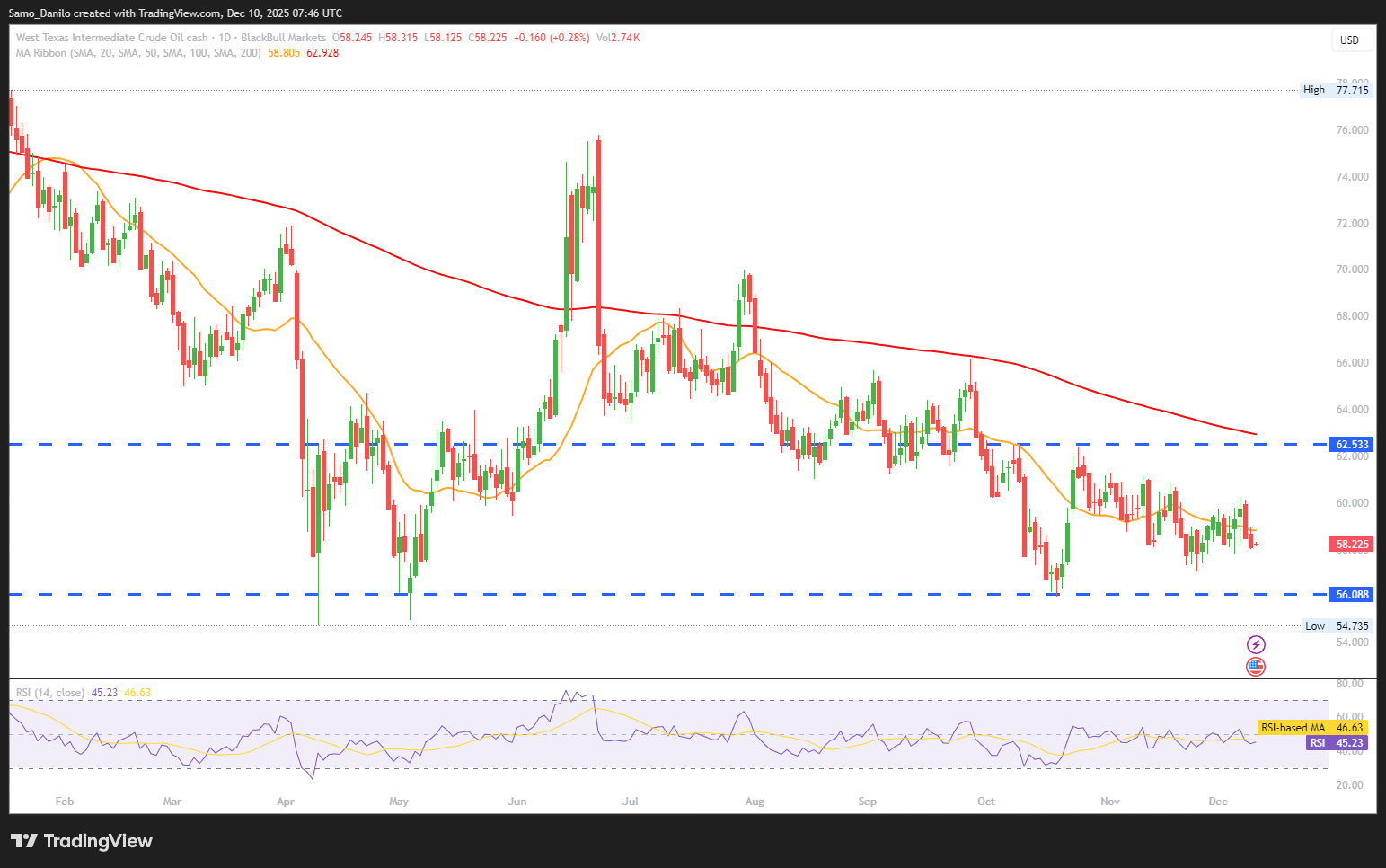 - Crude Oil Price: WTI falls further early Wednesday in the European session, trading around $58.20 per barrel.
