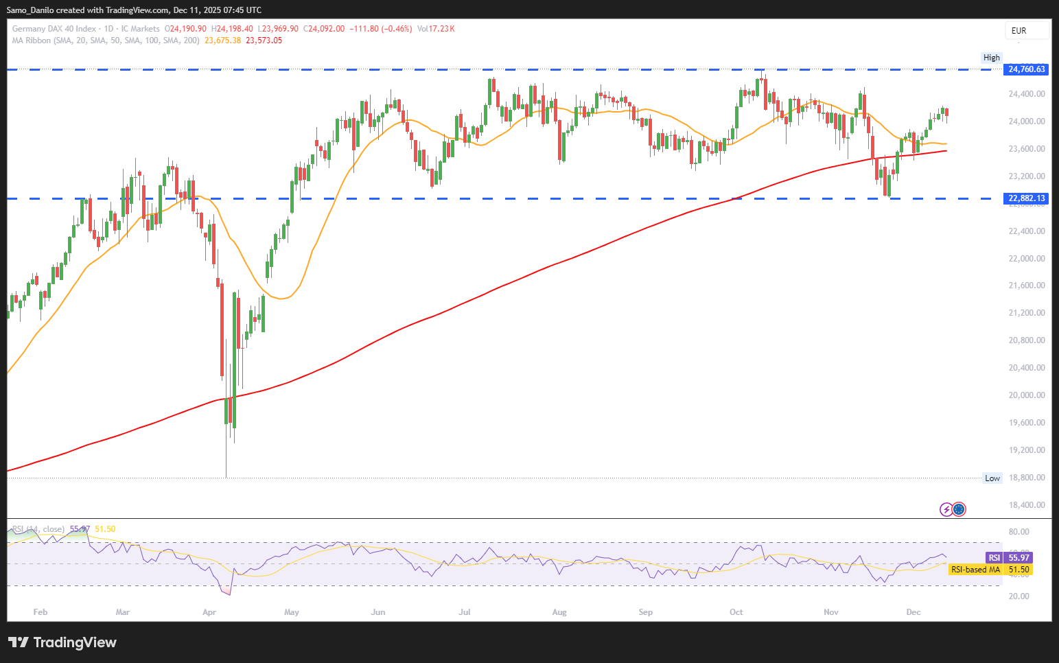 - DAX Price: The DAX remains slightly above 24,000 points following the Fed’s latest decision, reflecting cautious stability in European equities.