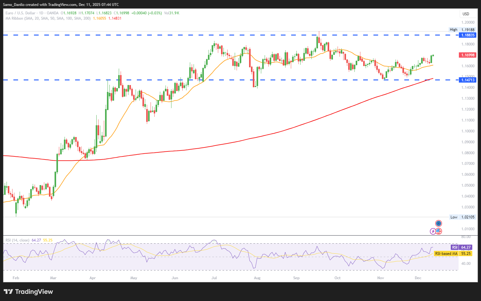 Closing statement: EUR/USD softens slightly as the Fed delivers a rate cut, while stable ECB expectations help limit deeper downside.