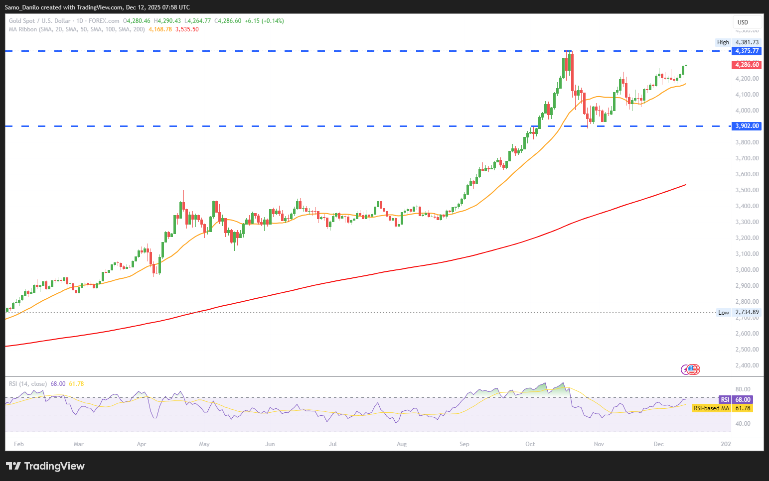 - XAU/USD Price: Gold drifts lower in Asian trading, trimming part of Thursday’s strong rally and breaking a three-day winning streak from the $4,285 region. Momentum has cooled slightly after reaching the highest level since late October.