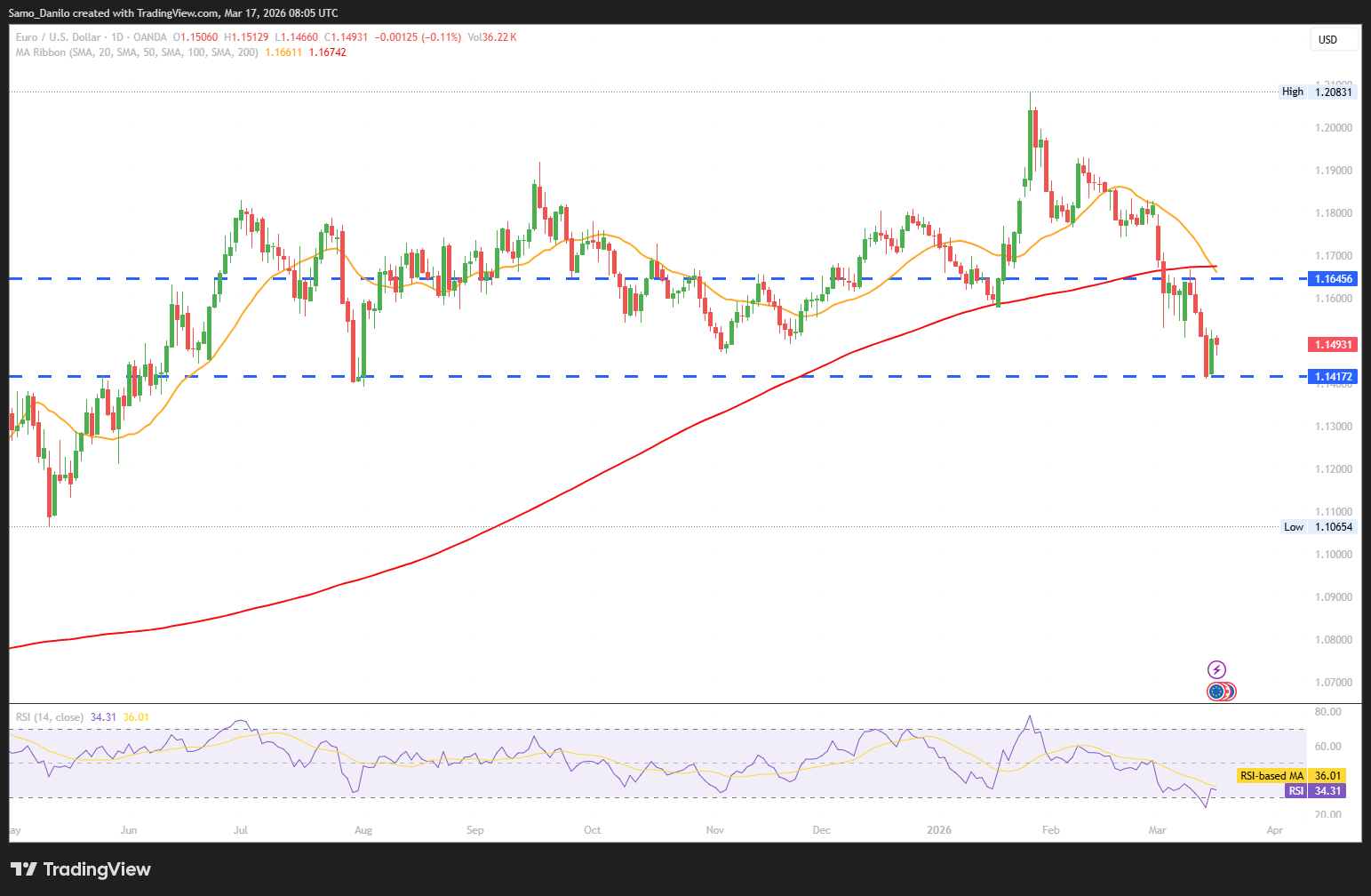 Closing statement: EUR/USD remains under pressure as markets balance ECB tightening expectations against a resilient US Dollar. Central bank guidance and energy-driven inflation risks will be key drivers in the near term.