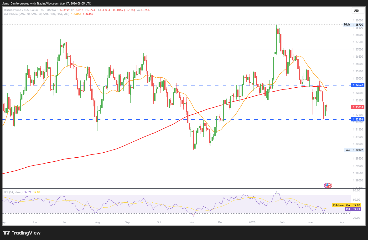 - GBP/USD Price: The GBP/USD continues to struggle for upside momentum, slipping back toward the 1.3300 level during European trading on Tuesday. The move reflects a combination of a firmer US Dollar and cautious sentiment around the UK outlook.