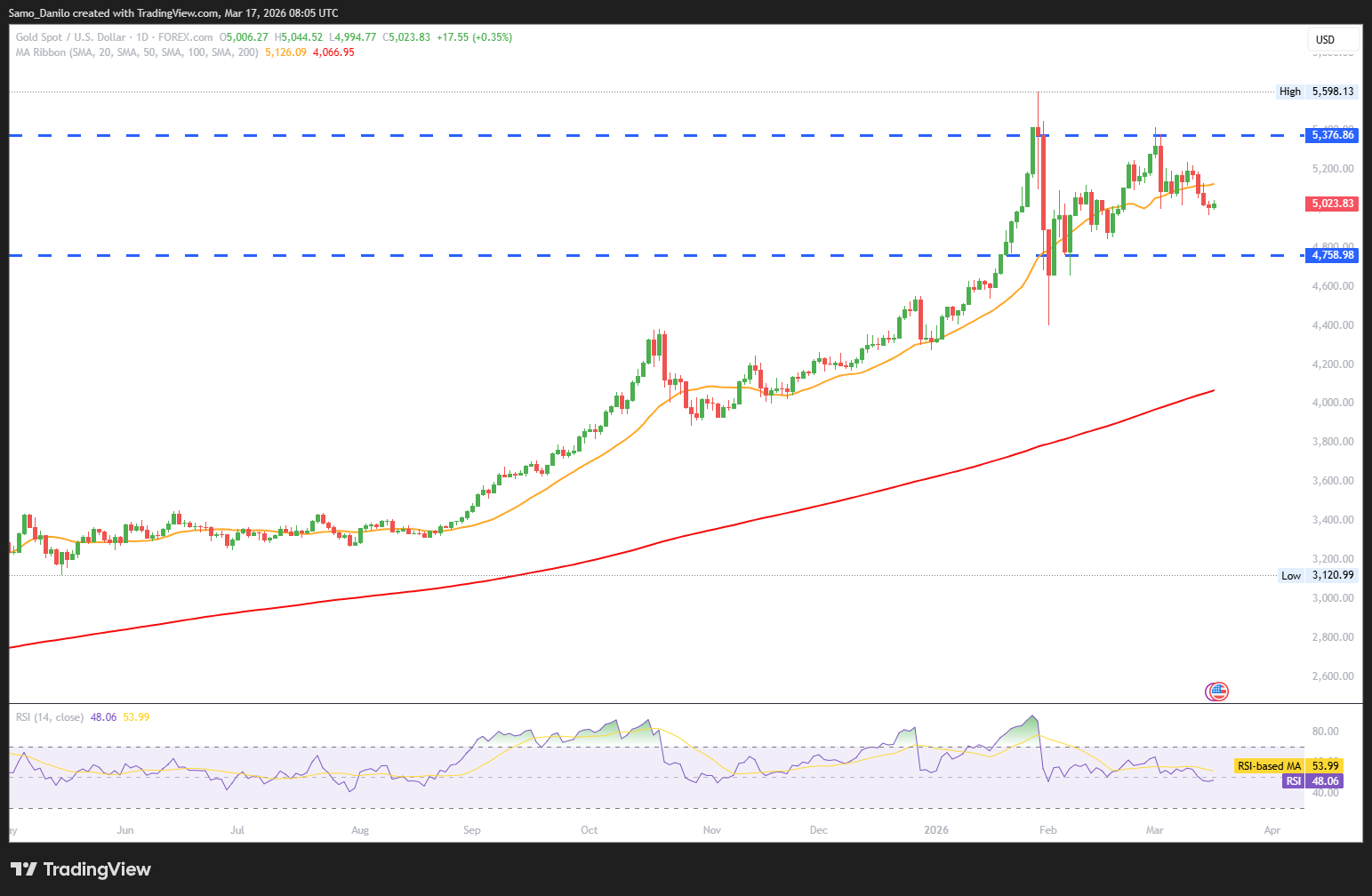 - XAU/USD Price: The XAU/USD managed to stabilize above the $5,000 psychological level after four consecutive days of losses. The resilience in Gold suggests ongoing demand for safe-haven assets amid geopolitical uncertainty.