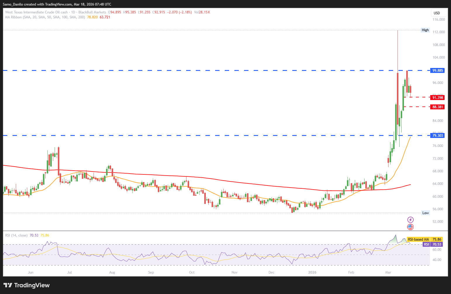 - Crude Oil Price: The West Texas Intermediate is trading below $93 per barrel, down more than 2.5% on the day and close to its weekly low. The pullback in Crude Oil suggests fading bullish momentum despite ongoing geopolitical risks.
