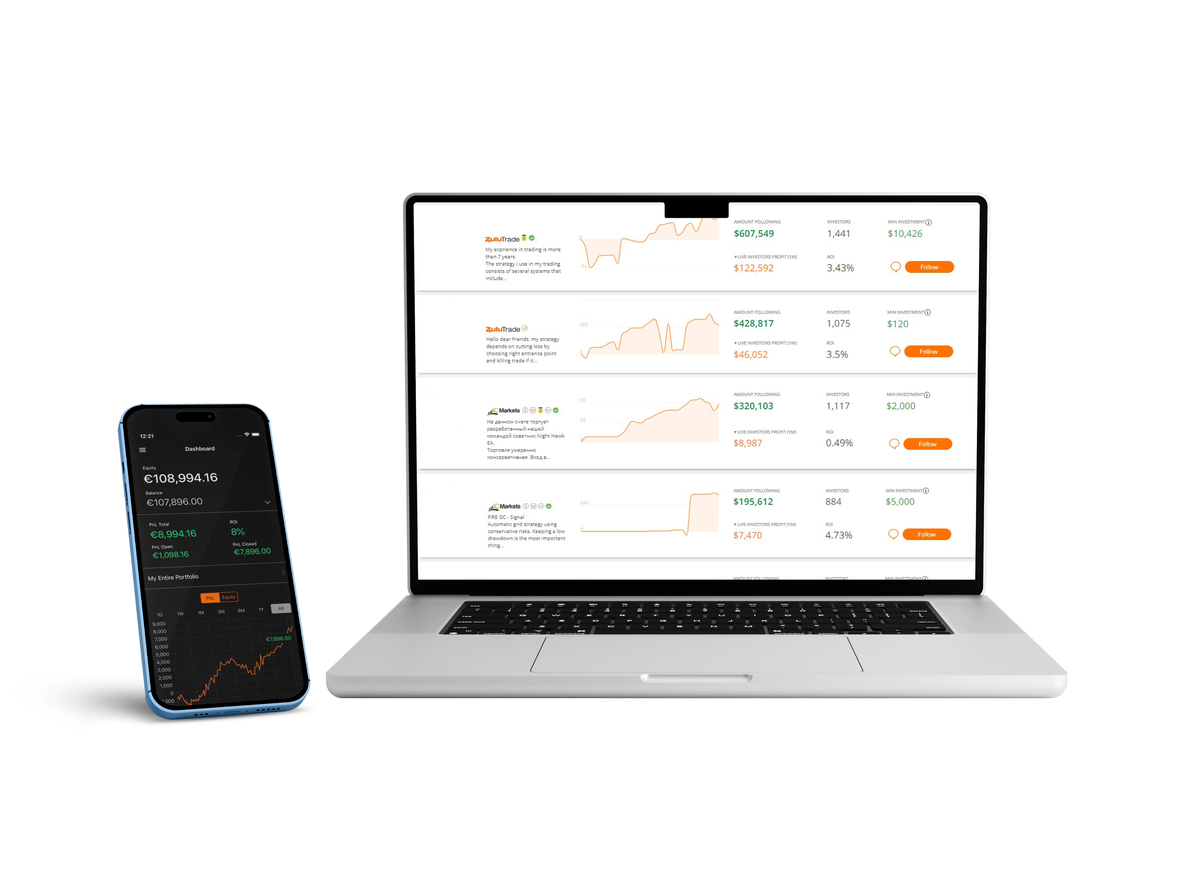 ZuluTrade is one of the best online Social Trading platforms. It allows users to locate, follow and copy other successful traders. You can execute these trades with your Finveo account.
